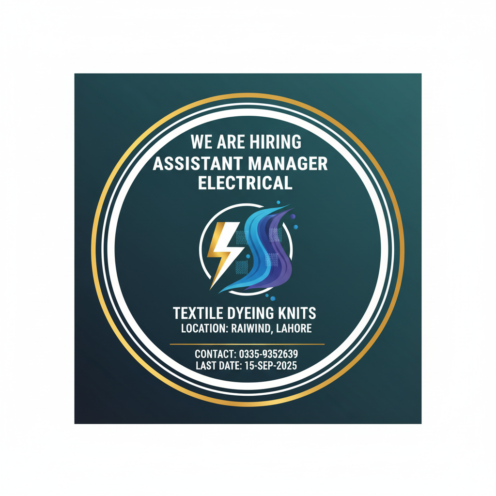 Are you an experienced Electrical Engineer looking for a leadership role in the textile industry? A well-established textile dyeing knits company in Raiwind, Lahore, is seeking a qualified and driven individual to join their team as an Assistant Manager Electrical.